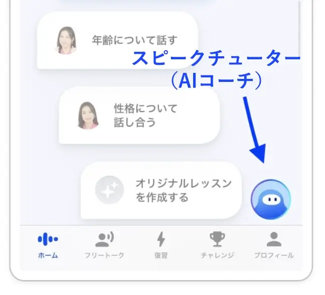 スピークのすごさって、「スピークチューター」というAIコーチが、自分の英語レベルや過去の会話を全部記憶して、自分専用のレッスンをしてくれることなんです。
