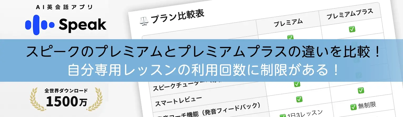 「スピーク(Speak)のプレミアムとプレミアムプラスって、何が違うの?」って迷っていませんか?